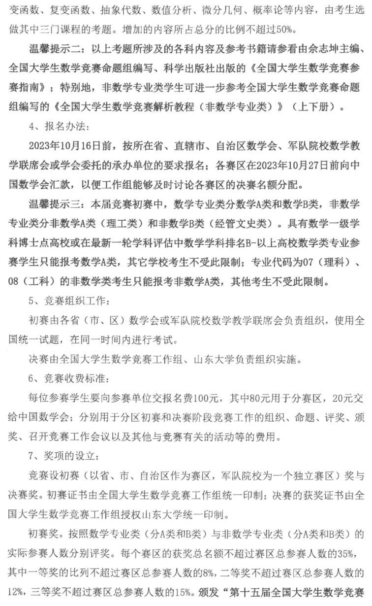 您當(dāng)前位置:網(wǎng)站首頁(yè) >> 通知公告 >> 關(guān)于舉辦第十五屆全國(guó)大學(xué)生數(shù)學(xué)競(jìng)賽的通知