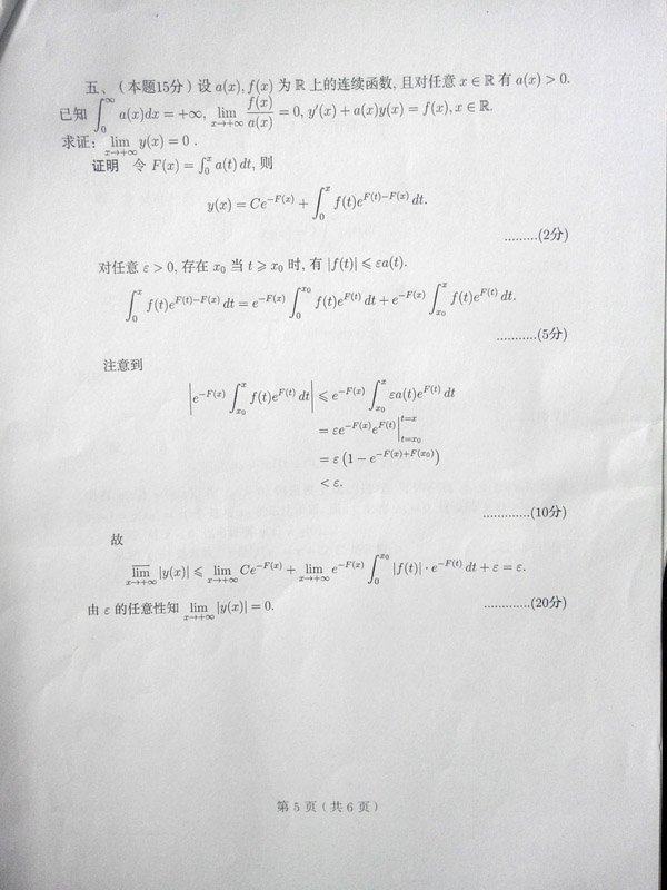2005年浙江省大學生高等數(shù)學(微