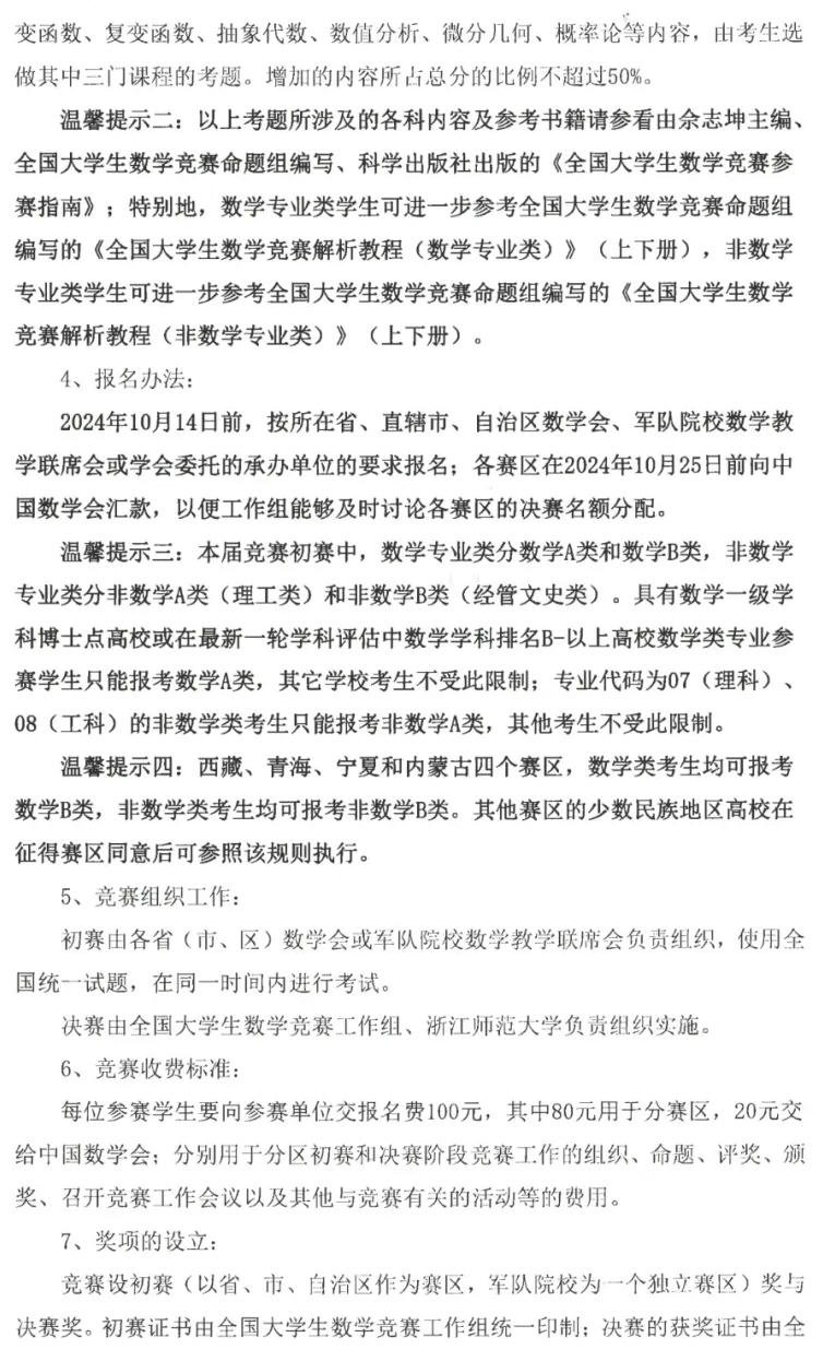 關(guān)于舉辦第七屆全國大學(xué)生數(shù)學(xué)競賽的通知