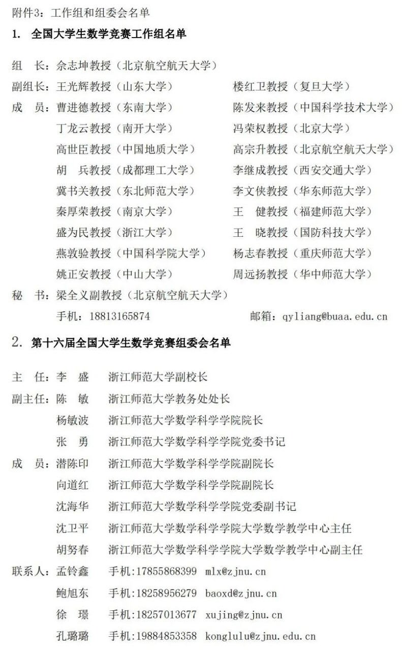 為了激勵(lì)大學(xué)生學(xué)習(xí)數(shù)學(xué)的興趣, 培養(yǎng)他們分析問題、解決問題的能力, 提升我國高等學(xué)校人才培養(yǎng)質(zhì)量, 促進(jìn)高等學(xué)校數(shù)學(xué)課程建設(shè), 并為青年學(xué)子搭建一個(gè)展示數(shù)學(xué)思維能力和學(xué)習(xí)成果的平臺(tái), 中國數(shù)學(xué)會(huì)決定舉辦第十六屆全國大學(xué)生數(shù)學(xué)競賽, 本次競賽將由浙江師范大學(xué)承辦。目前, 賽事已成功進(jìn)入高等教育學(xué)會(huì)的學(xué)科競賽榜單觀察目錄。