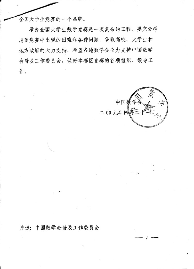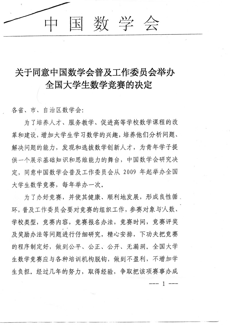 您當(dāng)前位置:網(wǎng)站首頁 >> 通知公告 >> 關(guān)于同意中國數(shù)學(xué)會普及工作委員會舉辦全國大學(xué)生數(shù)學(xué)競賽的決定