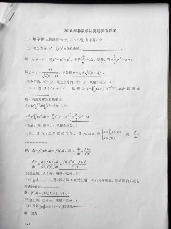 第七屆全國大學(xué)數(shù)學(xué)競(jìng)賽非數(shù)學(xué)競(jìng)